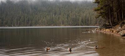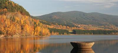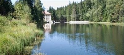 Kolem jezera vede okružní turistická stezka. Výhled na Velký Javor. Hostinec Seehäusl.