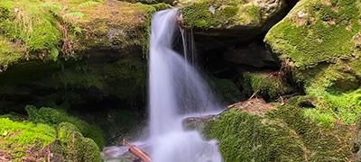 Dvojice menších (ale krásných) vodopádů na bezejmenném přítoku Úhlavy, 2 km od Zadních Hamrů.